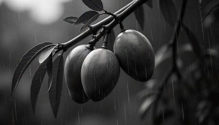 Lepisanthes rubiginosa, a wild fruit of Thailand that is ripe on the tree. On natural background