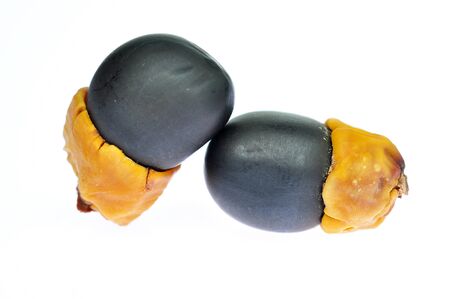 Fruit of Areca catechu or Areca palm or Indian nut or Pinang palm or Betel nuts or Betel palm tree.