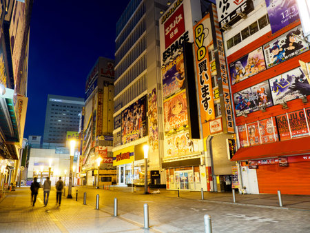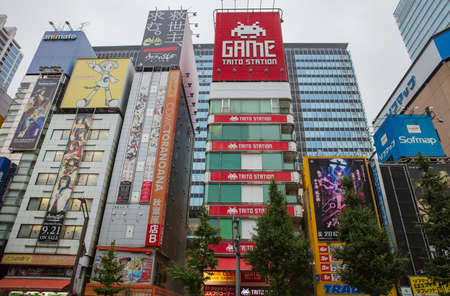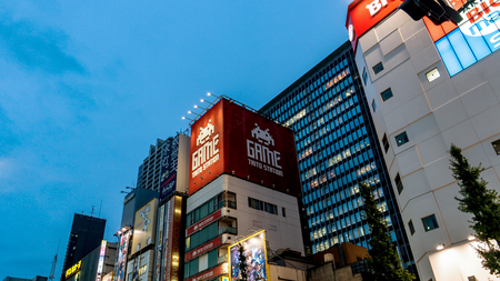 Tokyo, Japan - August 2018: Akihabara Electric Town district in the evening with Taito arcade gaming building