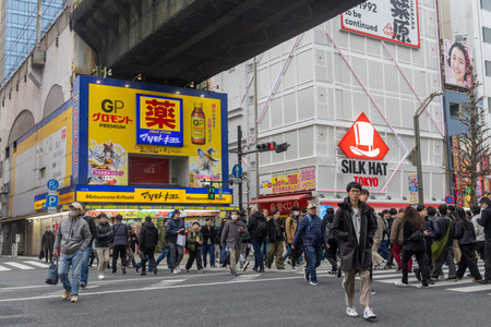 Tokyo, Japan- 27 Dec 2025: Huge crowd crossing the busy street in Akihabara, Tokyo. Akihabara is known as the global center for Japanese anime, gaming, and electronics culture