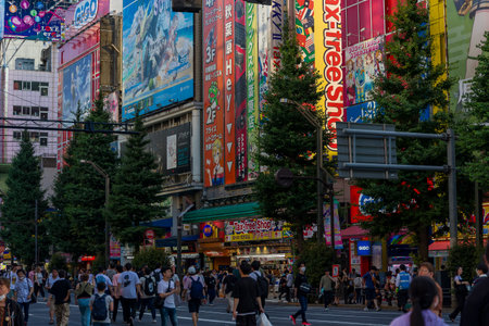 Tokyo, Japan- 27 Dec 2025: Huge crowd crossing the busy street in Akihabara, Tokyo. Akihabara is known as the global center for Japanese anime, gaming, and electronics culture