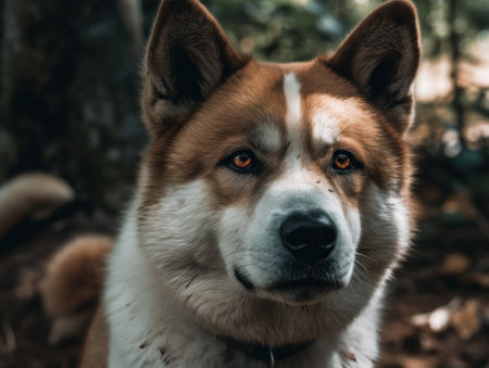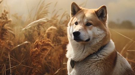 In the frame, an Akita stands proud, its portrait reflecting resilience, intelligence, and the dist.