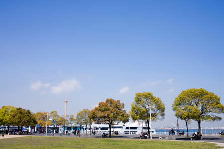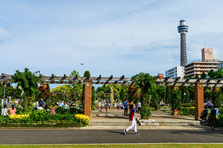 YOKOHAMA, JAPAN - MAY 6, 2017: Unidentified people in Yamashita Park at sunny day.