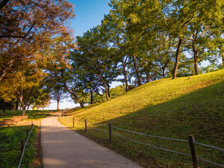 Morning park in Seoul. Beautiful sunrise. Nature background