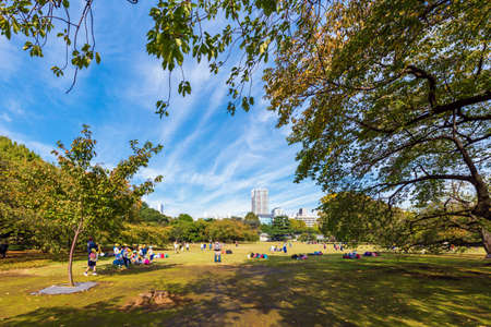 TOKYO, JAPAN - OCTOBER 31, 2017: Autumn in the Shinjuku park. Copy space for text