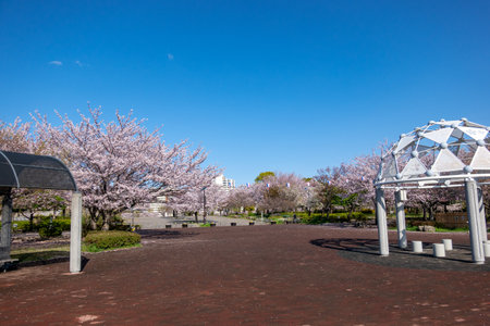 Cherry blossoms and slides in full bloom in the park