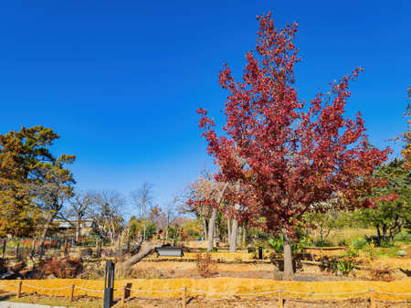 Sunny view fall color landscape of Oklahoma Zoo at Oklahoma