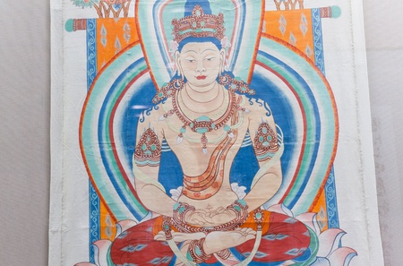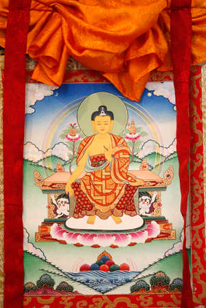 Tu An Buddhist temple. Buddha Shakyamuni Thangka. Buddhist religion. France.