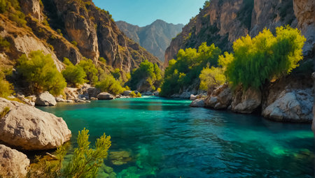 Blue river from Koprulu Tazi canyon, Manavgat, Antalya, Türkiye. Generative AI