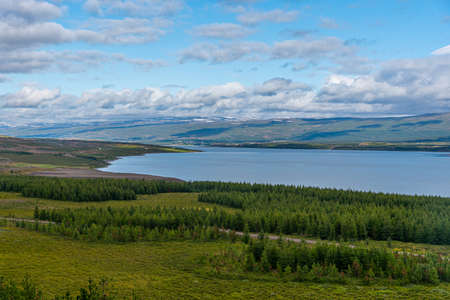 Lagarfljot or Logurinn lake in East Iceland. Nature landscape