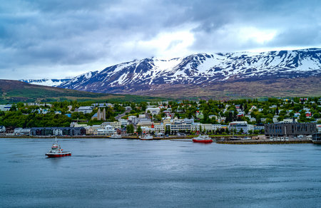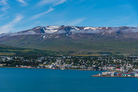 Akureyri, Iceland - August 15, 2016: Aerial view of Akureyri. Located in northern part of the country it is the second largest city in Iceland.