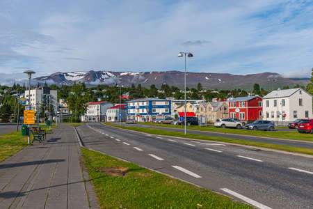 Akureyri, Iceland, August 17, 2020: Colorful houses at Akureyri, Iceland