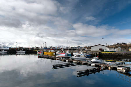 Husavik, Iceland, August 17, 2020: View of the port of Husavik, Iceland