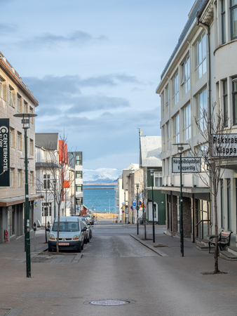REYKJAVIK, ICELAND - MARCH 10 : Street view at downtown near Hallgrimskirkja church square in Reykjavik, Iceland, on March 10, 2018.