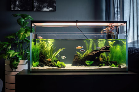 beautiful living room with aquarium and floating plants, creating natural habitat, created with generative ai