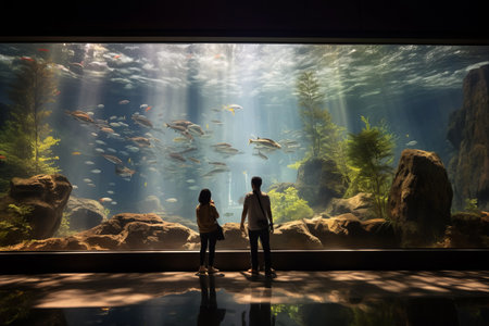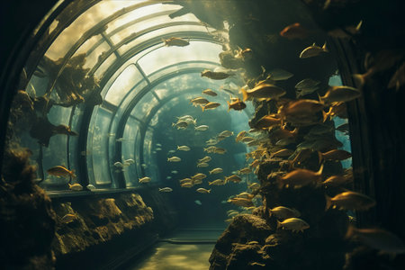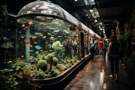 aquarium filled with schools of colorful fish, creating a peaceful setting, created with generative ai