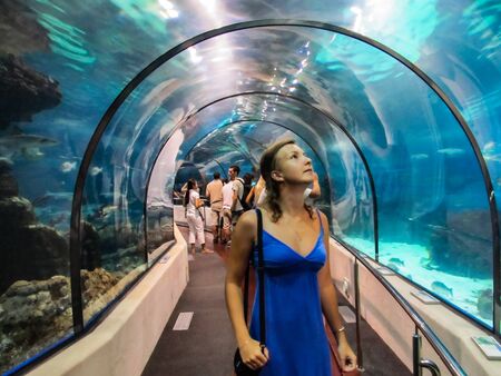 People watching fishes in aquarium. Gran Canaria Spain. May 2018. Poem of the Sea Aquarium.