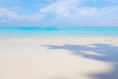 Tropical beach with white sand Bright sunshine with palm trees and turquoise waters.