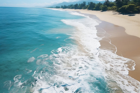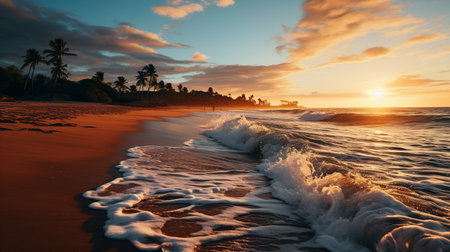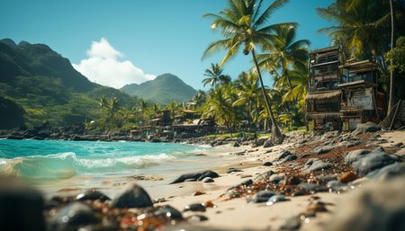 Tranquil scene of palm trees and waves at Caribbean waters edge generated by artificial intelligence