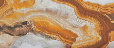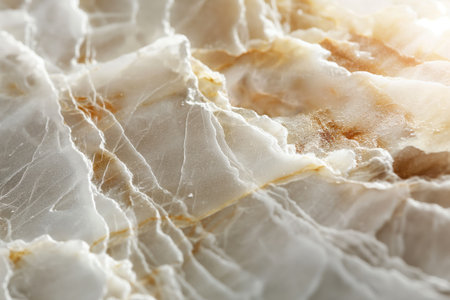 Closeup of light onyx slab with beautiful crystalline lines and stripes, geology theme for elegant wall panel or modern kitchen countertop surface decoration