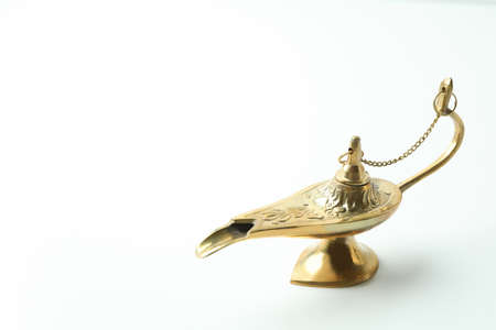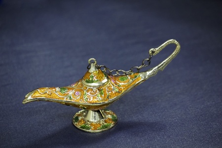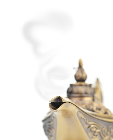 An isolated golden or bronze magic genie lamp, like Aladdins! :)