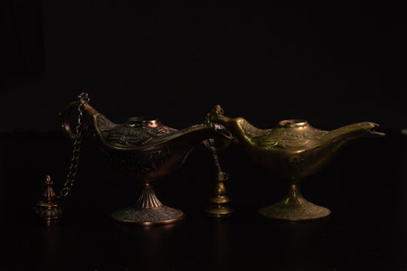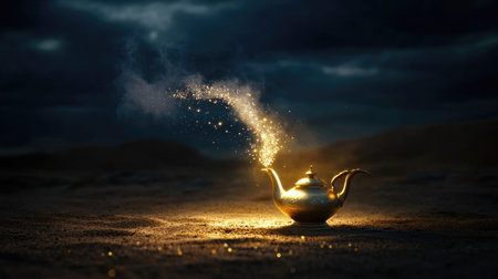Enchanting depiction of an Aladdin lamp Dramatic lighting against a dark background