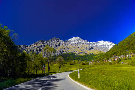 Asphalt road in Swiss Alps mountains, Leukerbad, Leuk, Visp, Wallis Valais Switzerland