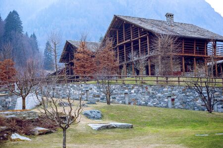 Country houses in Alpine village. Dolomites, Italy - nov, 2021. High quality photo