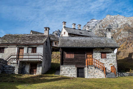 Traditional alpine village in Divedro Piedmont valley, alpe Devero Piedmont; Italy