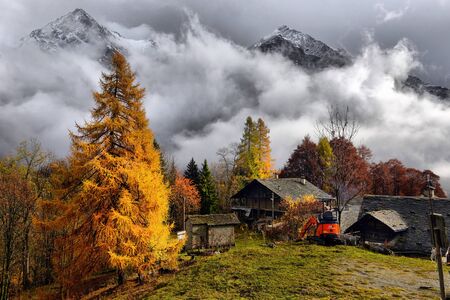 The colors of autumn at the Alpe Devero, little village in the mountains