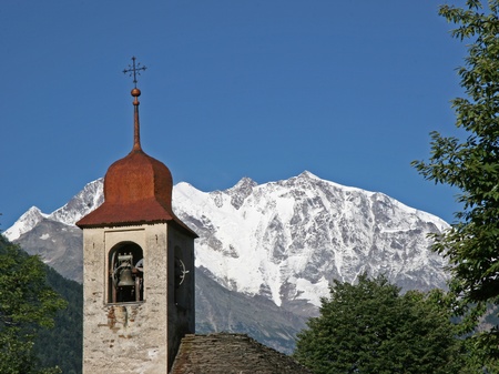 The village of Gressoney Saint Jean with Monte Rosa in the background