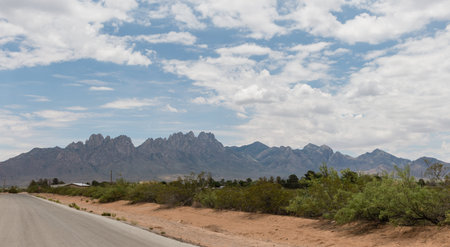 Scenic Organ Mountains vista in Las Cruces, New Mexico, under dramatic monsoonal sky