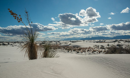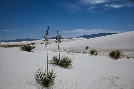 Drought-resistant desert plants and Yucca plants growing in White Sands National Monument, New Mexico, USA