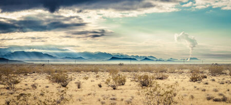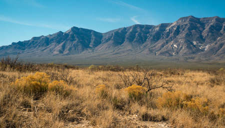 Desert landscape in fall with mountains in the background