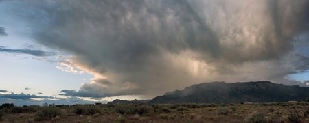 A giant storm passes over Albuquerque's Sandia Mountains during monsoon season