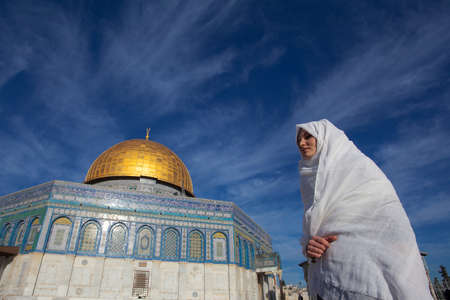 woman standing near Dome of the Rock Mosque near Jerusalem