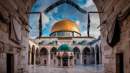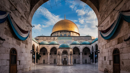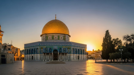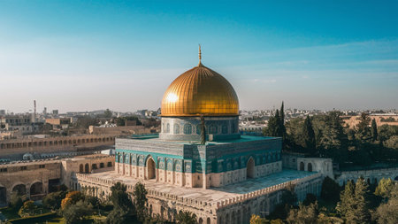 Golden Summit of Jerusalem shines under the sun., generative AI