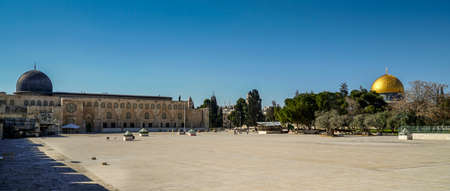 JERUSALEM, ISRAEL - FEBRUARY 1: View of the Mosque of Masjid al-Aqsa on February 1, 2018, Jerusalem, Israel. Al Aksa is the third holiest place of Islam after Meccah and Medina.