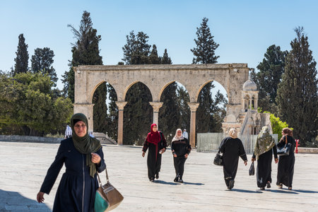 Muslim pilgrims infront of Al Aqsa Mosque in Jerusalem, Israel.