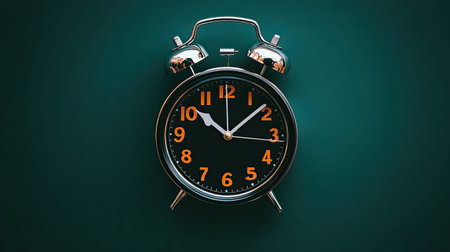 This image showcases a vintage alarm clock with orange numbers against a green background, reflecting the elegance of classic design and timekeeping.
