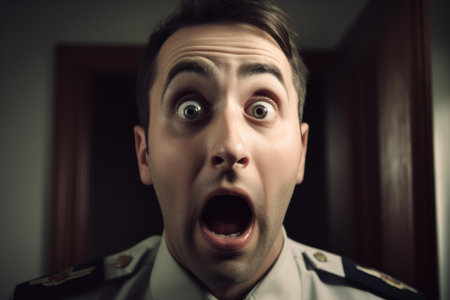 Reflective Shocked aviation pilot. Wow fear. Generate Ai