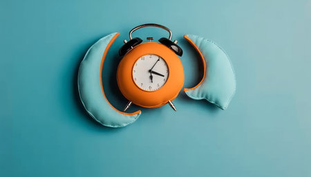 hand holding alarm clock against black background, late night shift tension and insomnia mood conveyed with dramatic contrast, useful for healthcare scheduling, night routines and time pressure