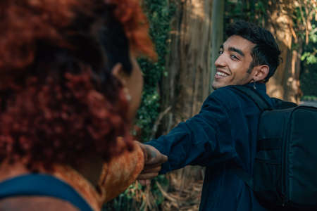 young multiethnic couple traveling outdoors