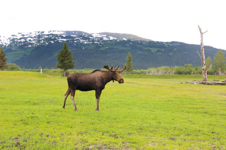 Moose bull in wilderness in Alaska, Denali National Park