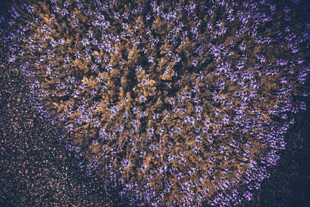 View from Above on a Beautiful Purple Floral Bush. Nice Flower Bed. Fresh Spring Nature. Abstract Natural Flat Lay Background.