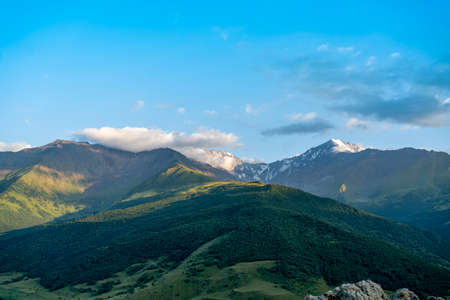Photo Mountains of North Ossetia, beautiful summer landscapes with blue sky and clouds.