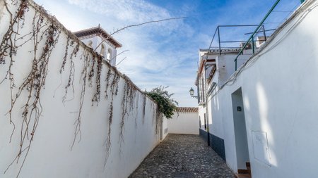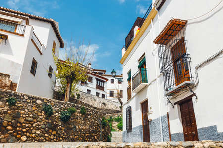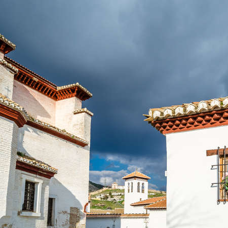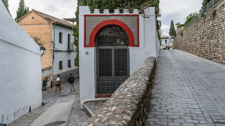 Granada, Spain, April 06, 2018: Traditional arabic architecture of Andalusia, Albaicin Moorish medieval quarter, Granada, Spain
