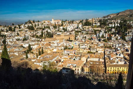 Albaicin in Granada, view from the Alhambra. Medieval town