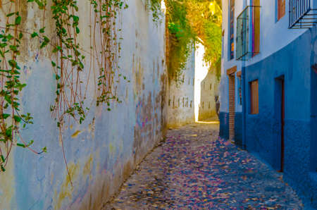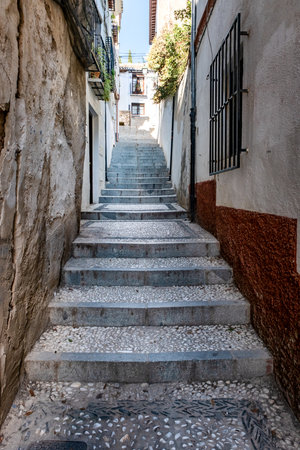 Granada, Spain, June 15, 2021. Albaicin neighborhood street in the city of Granada, Andalucia, Spain