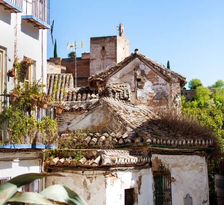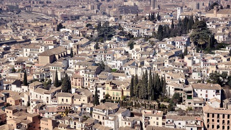 View from roof on buildings in old central part of world heritage city Granada, Andalusia, Spain in spring